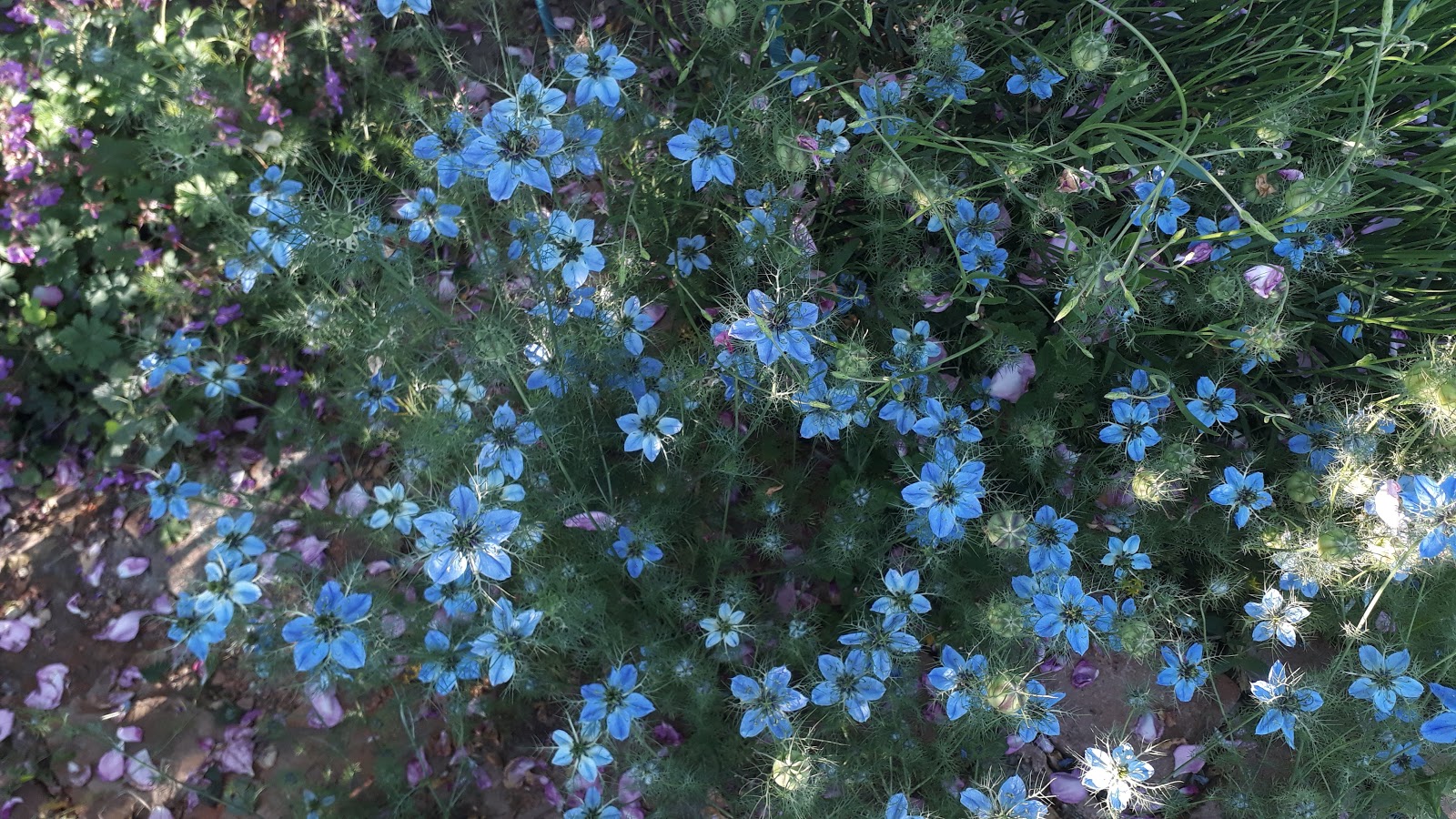 Kék csatavirág bent a sűrűben (is). Nagy kedvenc. Gyönyörű a virágzata.